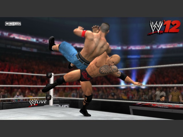 WWE 12 mirrors the energetic spectacle and cheesy swagger of the television programming it's based on with admirable gusto. Outside of the ring, there are plenty of flashy, grand entrances and throngs of cheering fans eager to see endless combinations of the game's huge selection of wrestling combatants bludgeon one another in style. When it comes to the matches themselves, the action is fast-paced and intense. The game's overhauled engine showcases a nice level of detail in the character models, and the animations are more fluid this time around when transitioning between attacks and reversals, but it's still rough around the edges in spots. Collision detection is off at times, and some transitions are a little too fluid. For example, it's possible to go from throwing a punch at your opponent to almost instantly being upside down between his legs in a midair pile driver--weird instances like this can happen so fast that you don't even know how you wound up being ground face-first into the mat. Other times, though rare, the game bugs out altogether. One glitch causes a wrestler to float very slowly toward the screen, through the ropes, out of the ring, and into the air above the crowd, forcing a reset of the match to restore order. That said, major bugs are infrequent, and most matches do look realistic enough to appease followers of the sport.